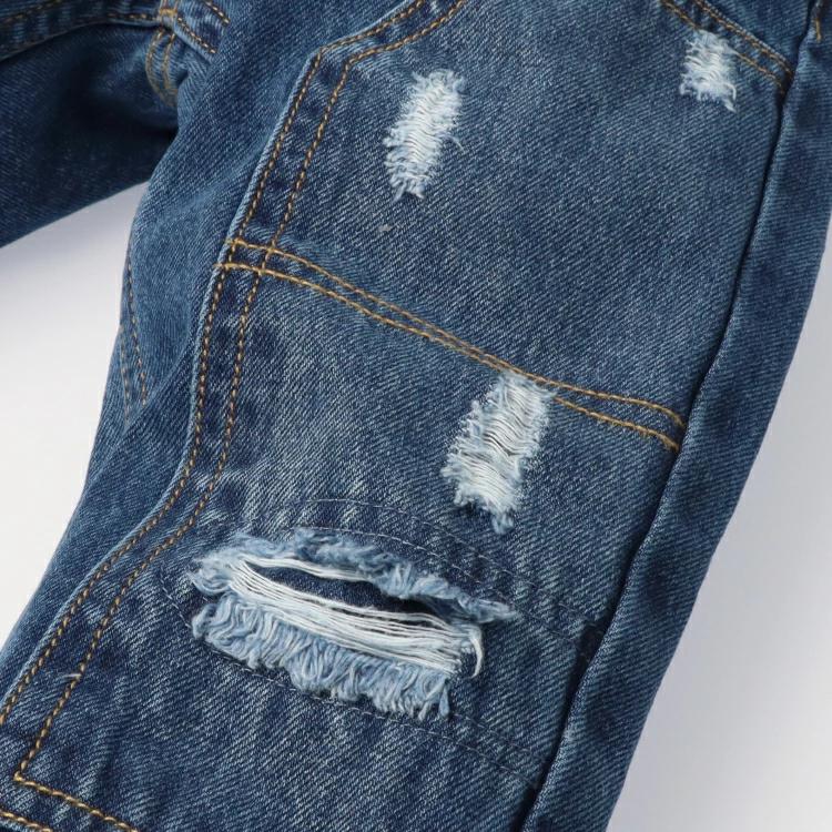 10オンスのストレッチデニムのダメージデニムパンツ、長ズボン。ダメージ感やブラストが本格的な仕上がりです。かっこよく着こなせるアイテム。同じデザインのスクールサイズ(140,150,160cm)はV15005になります。【アイテム】シンプル ベーシック 無地 カジュアル お洒落 オシャレ かっこいい かわいい 可愛い 普段着 お外着 お外遊び着 デイリーウェア お出かけ着 ロング丈 長丈 長ズボン フル丈 ボトムス 子ども こども 男児 男の子 ボーイズ キッズ ベビーサイズ トドラーサイズ 幼稚園 保育園 小学校 通園 通学 小学生 2025年春夏物新作 丸高衣料 ブルー ネイビー 紺色 ダディオダディ ジーンズ ジーパン Gパン