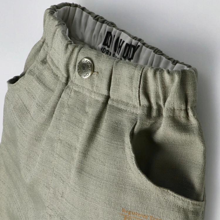 麻のような見た目、しっかりした風合いで肌触りのよいバニラン生地。凹凸感ある素材で肌に密着する面積が少ないため、汗をかいても肌にまとわりつかず、さらっと涼しく着られます。膝が隠れる6分丈のハーフパンツ。無地デザインでどんなアイテムとも合わせやすい! 同じデザインのスクールサイズ(140,150,160cm)はV35129になります。【アイテム】シンプル ベーシック 無地 カジュアル お洒落 オシャレ かっこいい かわいい 可愛い 普段着 お外着 お外遊び着 デイリーウェア お出かけ着 ハーフパンツ 短パン 半パン 半ズボン ボトムス 子ども こども 男児 男の子 ボーイズ キッズ ベビーサイズ トドラーサイズ 幼稚園 保育園 小学校 通園 通学 小学生 2025年春夏物新作 丸高衣料 ブラック 黒色 カーキグリーン 深緑色 ロゴ ダディオダディ