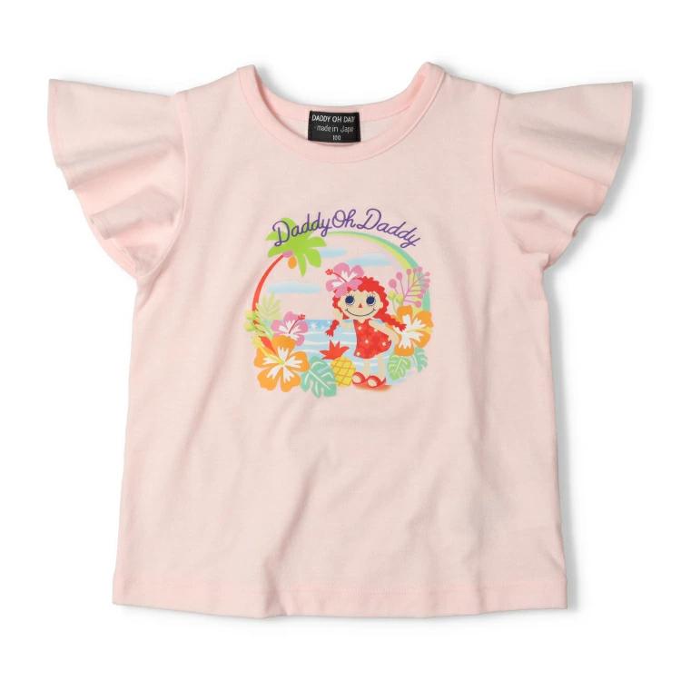 【安心の日本製】でギフトやプレゼントにもオススメ!肌触りの良い綿100%。リゾート感あふれるダディコのプリント入り。フレアーな袖が女の子らしい半袖Tシャツ。【アイテム】トップス シンプル ガーリー フェミニン カジュアル お洒落 オシャレ かわいい 可愛い 普段着 デイリーウェア お出かけ着 お外着 お外遊び着 子ども こども 女児 女の子 ガールズ キッズ ベビーサイズ トドラーサイズ 幼稚園 保育園 小学校 通園 通学 小学生 2025年春夏物新作 丸高衣料 コットン100% 綿100% made in Japan メイドインジャパン 国内生産 ホワイト 白色 ピンク