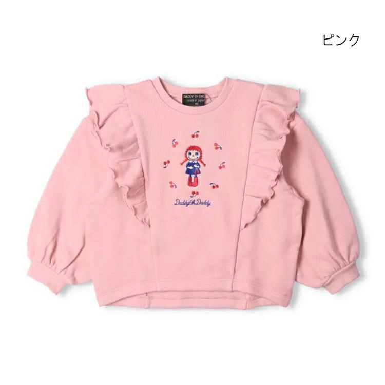 ダディオダディの人気キャラクター「ダディコちゃん」の裏毛トレーナーです。【安心の日本製】で、ギフトやプレゼントにもおすすめ!秋から冬にかけて活躍し、春まで使える裏毛素材のトレーナー。ダディコちゃんとチェリーの刺繍がとってもキュート!肩から正面にかけてのフリルと、ぽわんと大きな袖がガーリーで上品な雰囲気です♪スカートと合わせてガーリーに、パンツと合わせてカジュアルにと、さまざまなシーンで活躍するアイテムです!90cmのみ肩ボタン仕様です。【アイテム】長袖 ロングスリーブ トップス トレーナー シンプル ガーリー フェミニン カジュアル お洒落 オシャレ かわいい 可愛い 普段着 デイリーウェア お出かけ着 お外着 お外遊び着 子ども こども 女児 女の子 ガールズ キッズ ベビーサイズ トドラーサイズ 幼稚園 保育園 小学校 通園 通学 小学生 2024年秋冬物新作 丸高衣料 ピンク ラベンダー 薄紫色 フリル コットン100% 綿100%