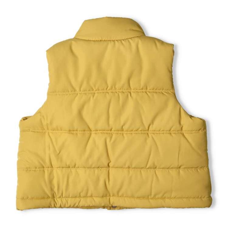 ボリューム感のある中綿入りベスト。 滑らかな手触りで光沢のあるタフタ素材が使用されており、トレンド感のあるスタイルになります。 裏地と表地のカラーが異なり、おしゃれ度の高いアイテムです。 また、胸元のロゴ刺繍がポイントになっています。シンプルなデザインでコーディネートに取り入れやすく、寒暖差の大きい秋から冬にかけて、インナーを変えて長いシーズンお使いいただけます。 裾はゴムで絞ることができるので、体を包み込み風の侵入を防ぎます。同じデザインのスクールサイズ(140,150,160cm)はV52207です。【アイテム】アウター 軽防寒 ライトアウター カジュアル お洒落 オシャレ かっこいい かわいい 可愛い 普段着 デイリーウェア お出かけ 子ども こども 男児 男の子 女児 女の子 ガールズ ボーイズ キッズ ベビーサイズ トドラーサイズ 幼稚園 保育園 小学校 通園 通学 小学生 遠足 旅行 2024年秋冬物新作 丸高衣料 ブラック 黒 ベージュ ダディオダディ