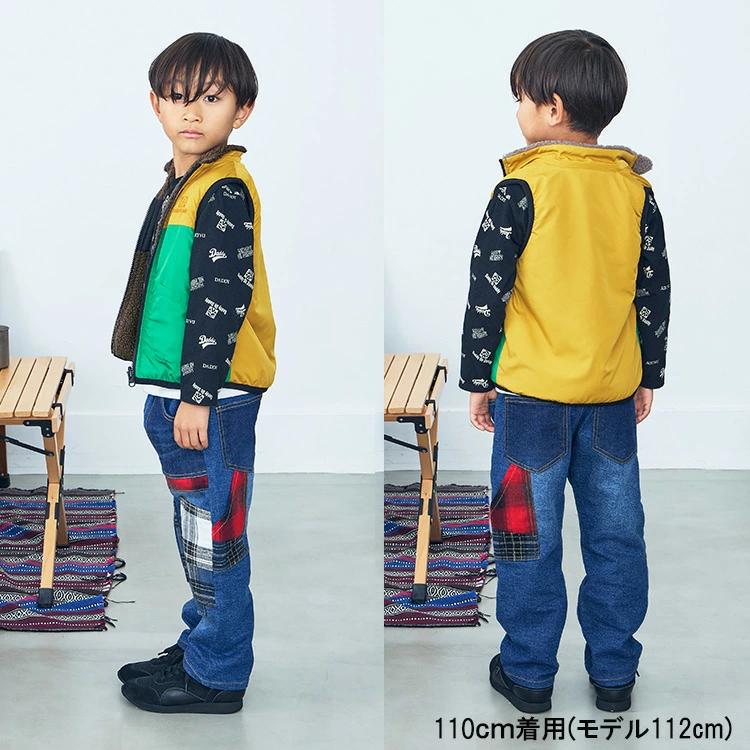 チェック柄とデニムのブロッキングが魅力的なデニムのが長パンツ、長ズボン。柔らかく伸びの良いストレッチデニム生地で、ストレスフリーな履き心地。パッチワーク風のデザインが存在感のあるスタイルを演出します。ラフ感があるゆったりめのストレートシルエットで、トレンド感のあるスタイリングが楽しめます。同じデザインのスクールサイズ(140,150,160cm)はV53015になります。【アイテム】シンプル ベーシック 無地 カジュアル お洒落 オシャレ かっこいい かわいい 可愛い 普段着 お外着 お外遊び着 デイリーウェア お出かけ着 ロング丈 長丈 長ズボン フル丈 ボトムス 子ども こども 男児 男の子 ボーイズ キッズ ベビーサイズ トドラーサイズ 幼稚園 保育園 小学校 通園 通学 小学生 2023年秋冬物新作 丸高衣料 ネイビー コン 紺色 ブルー 青 チェック ダディオダディ