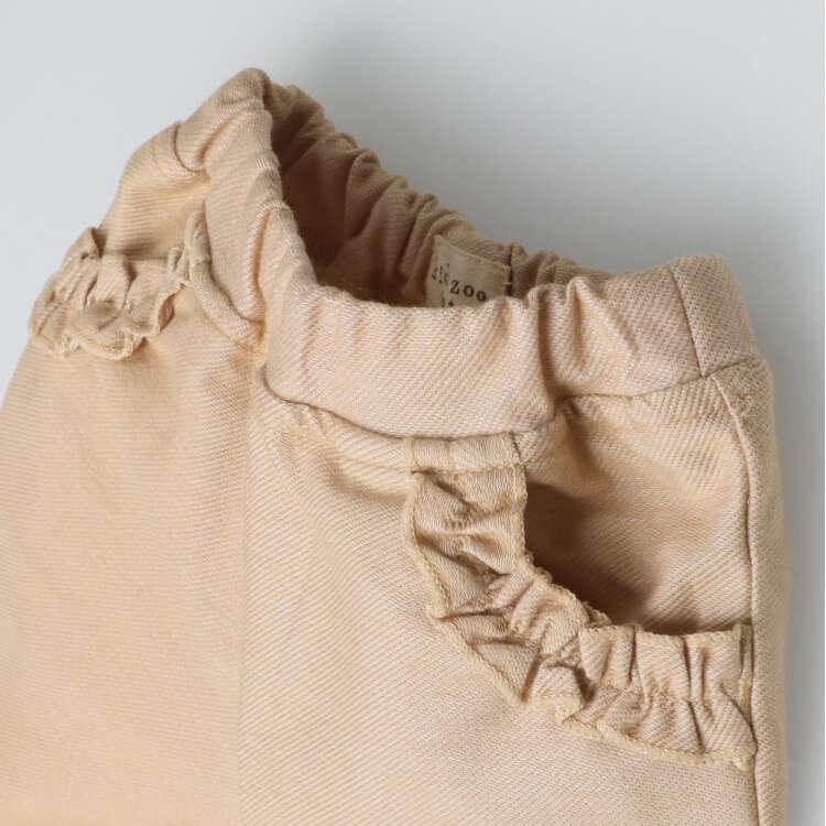 さまざまなスタイリングに重宝するふくらはぎ丈のカットパンツ。柔らかデニムニット素材で動きやすく、履かせやすい!ポケット口のフリルや裾が少し広がったシルエットで裾フリルのデザインがキュートな印象。どんなお洋服にも合わせやすいので着回し力抜群です。【アイテム】プレゼント ギフト 出産祝い お誕生日祝い バースデー 赤ちゃん服 ベビー服 贈り物 ボトムス 無地 シンプル ガーリー カジュアル お洒落 オシャレ かわいい 可愛い 普段着 デイリーウェア お出かけ着 ハーフパンツ 短パン 半パン ボトムス 子ども こども 女児 女の子 ガールズ キッズ ベビーサイズ 幼稚園 保育園通園 2024年春夏物新作 丸高衣料 ブルー 青色 ベージュ キッズズー