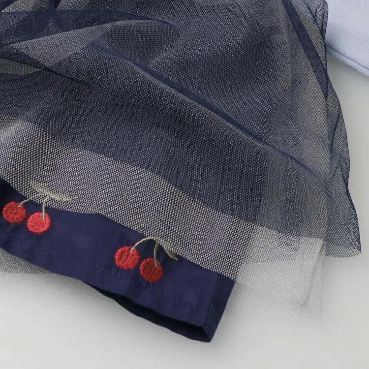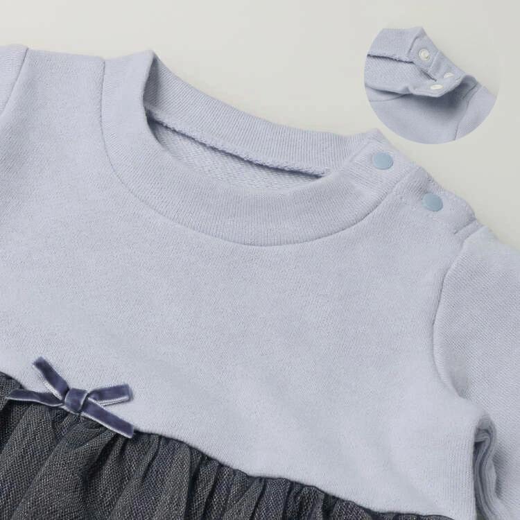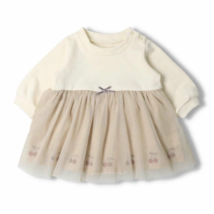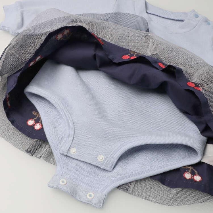 ワンピース見えするデザインがポイントのトレーナーオール、ロンパースです。スカートの裾にはチェリー柄の刺繍を施し、チュールスカートの重ね使いで華やかに決まるアイテム。股部分にボタンが付いている、被りタイプになります。【アイテム】プレゼント ギフト 赤ちゃん服 ベビー服 贈り物 トップス ボトムス つなぎ カジュアル お洒落 オシャレ かわいい 可愛い 普段着 デイリーウェア お出かけ着 ロンパース トレーナーオール 子ども こども 女児 女の子 ガールズ キッズ ベビーサイズ 幼稚園 保育園 通園 2023年夏物新作 丸高衣料 スウェット さくらんぼ 果物 フルーツ リボン りぼん オフホワイト 白色 ブルーラベンダー 青薄紫色 キッズズー