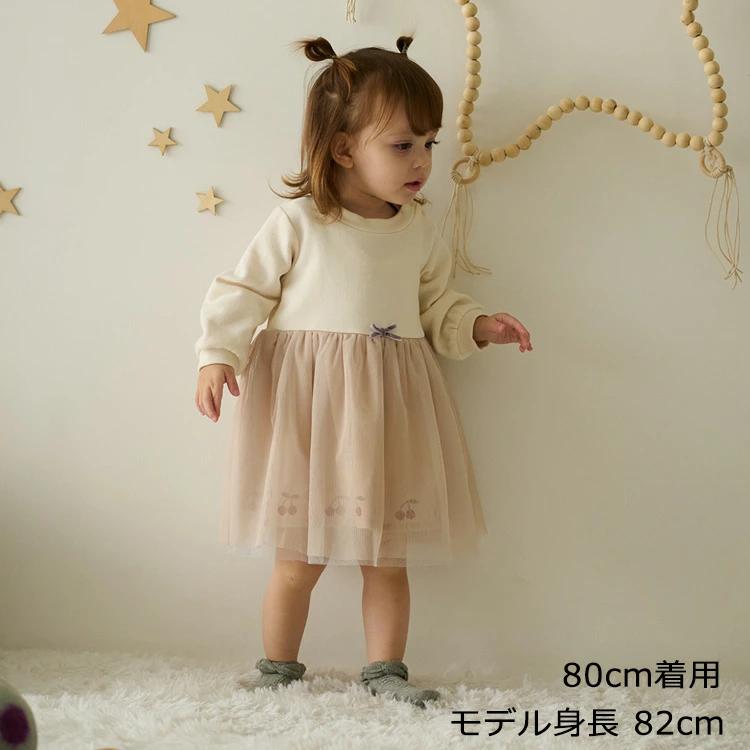 ワンピース見えするデザインがポイントのトレーナーオール、ロンパースです。スカートの裾にはチェリー柄の刺繍を施し、チュールスカートの重ね使いで華やかに決まるアイテム。股部分にボタンが付いている、被りタイプになります。【アイテム】プレゼント ギフト 赤ちゃん服 ベビー服 贈り物 トップス ボトムス つなぎ カジュアル お洒落 オシャレ かわいい 可愛い 普段着 デイリーウェア お出かけ着 ロンパース トレーナーオール 子ども こども 女児 女の子 ガールズ キッズ ベビーサイズ 幼稚園 保育園 通園 2023年夏物新作 丸高衣料 スウェット さくらんぼ 果物 フルーツ リボン りぼん オフホワイト 白色 ブルーラベンダー 青薄紫色 キッズズー