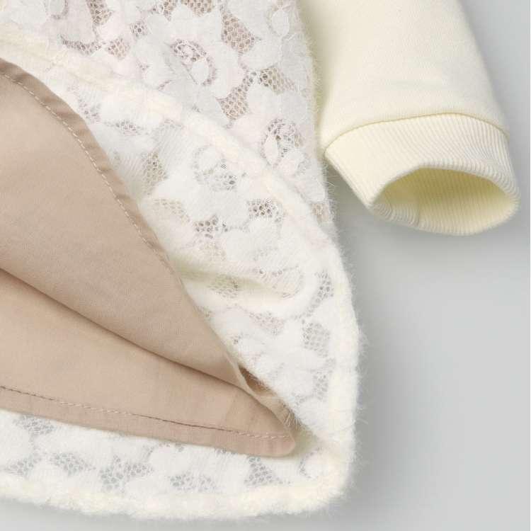 ☆80~130cmサイズ展開商品☆裏毛生地に花柄起毛レースがドッキングされた長袖ワンピース。裏毛のカジュアルさがありながら、華やかなレースによって上品でキュートな雰囲気のあるアイテムです!1枚でコーデが完成するので、思わずお出かけしたくなる一枚♪柄×柄がおしゃれなボーダーと、より上品な雰囲気のオフホワイトの2色展開です。※80~90cmのみ肩ボタン仕様です。【アイテム】長袖 ロングスリーブ トップス シンプル ガーリー フェミニン カジュアル お洒落 オシャレ かわいい 可愛い 普段着 デイリーウェア お出かけ着 お外着 お外遊び着 子ども こども 女児 女の子 ガールズ キッズ ベビーサイズ トドラーサイズ 幼稚園 保育園 小学校 通園 通学 小学生 2024年秋冬物新作 丸高衣料 赤ちゃん服 ベビー服 贈り物 ホワイト 白 ブラック 切替 配色 キッズズー お揃い オソロイ