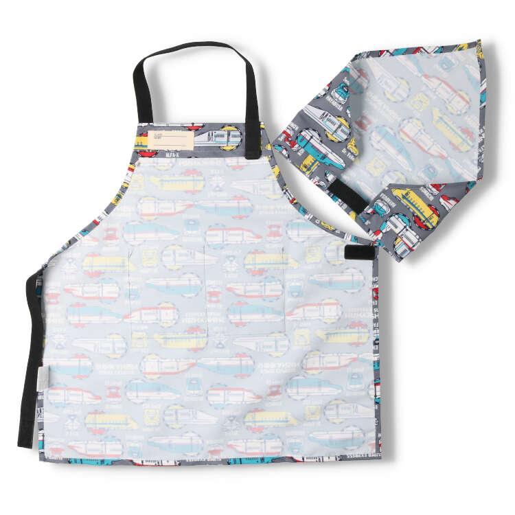 JR新幹線柄のエプロンと三角巾です。ドクターイエロー、こまち、はやぶさ、アルファXが柄に入っています。お子様のお家でのお手伝い用や最近流行のお子様のお料理教室にも大活躍のエプロン。三角巾はゴムが付いているので、被るだけの簡単タイプです。首元と腰のゴムにマジックテープが付いているので、着脱も簡単です!素材はポリエステルで軽く着やすいアイテムです。対応サイズはMが100~120cm、Lが120~140cmになります。同じ柄で巾着(B13692、B13694)、シューズケース(B13695)や移動ポケット(B13696)やランチョンマット(B13898)、レッスンバッグ(B13698)があるので、入園、入学準備で色々なアイテムを同じ柄に揃えることも出来ます。【アイテム】雑貨 カジュアル お洒落 オシャレ かっこいい かわいい 可愛い 普段着 デイリーウェア お出かけ 子ども こども 男児 男の子 ボーイズ キッズ ベビーサイズ トドラーサイズ 幼稚園 保育園 小学校 通園 通学 小学生 遠足 旅行 2024年春物新作 丸高衣料 小物 鉄道 子鉄 ハングリーハート ムージョンジョン グレー 灰色 ブルー 青色 お料理教室 調理実習 給食