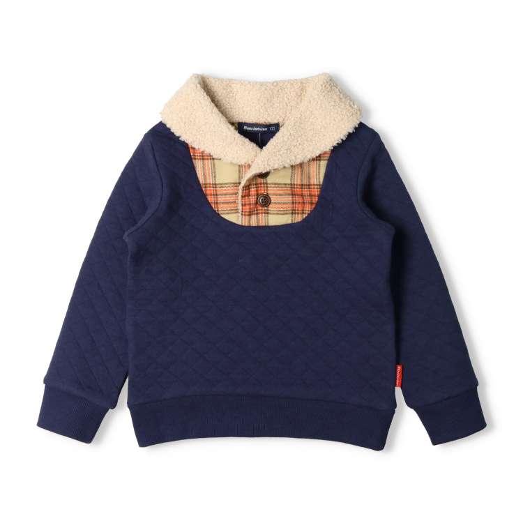 秋冬らしい中綿入りのキルティング、ニットキルト素材のトレーナー。チェック柄の飾り布の切替デザイン。同じチェック柄切替のキルト素材のパンツ(M53009)、女の子のトレーナー(M62652)もあるので、兄弟姉妹やお友達と男女でアイテム違いでペア、リンクコーデ、お揃い、おそろいコーディネートも楽しめます!【アイテム】トップス カジュアル お洒落 オシャレ かっこいい かわいい 可愛い 普段着 デイリーウェア お出かけ着 お外着 お外遊び着 子ども服 こども服 男児 男の子 ボーイズ キッズ ベビーサイズ トドラーサイズ 幼稚園 保育園 小学校 通園 通学 小学生 2024年秋冬物新作 丸高衣料 ロングスリーブ 長袖 グレー 灰色 コン ネイビー 紺色 ムージョンジョン コットン100% 綿100% 兄妹 姉弟 兄弟 姉妹 お揃い オソロ おそろい お揃いリンク リンクコーデ