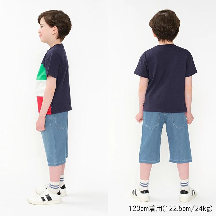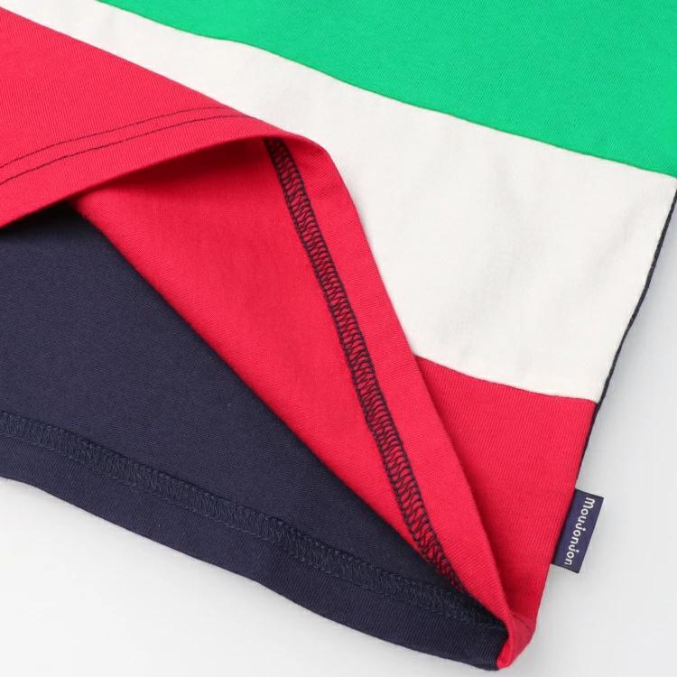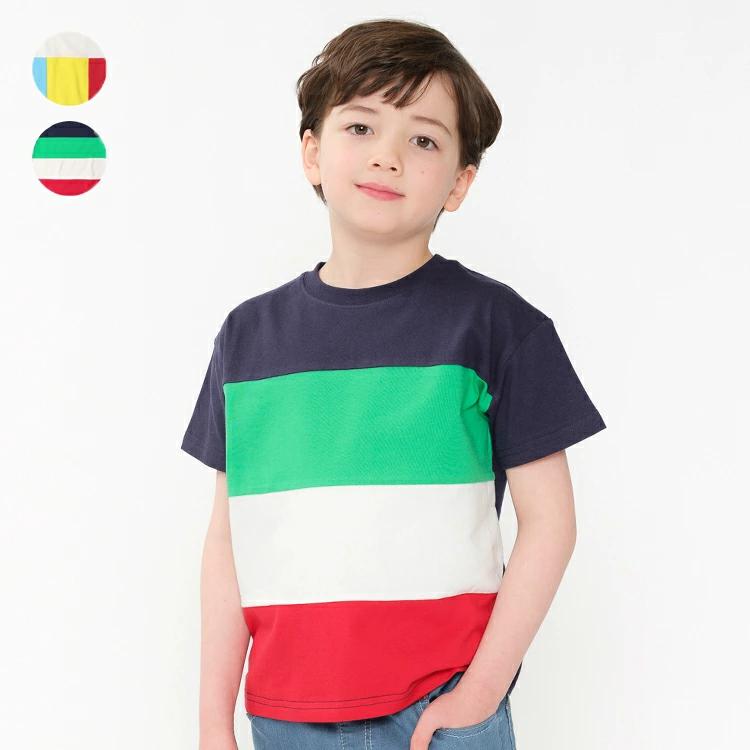 ビビッドカラーの切替デザイン。ホワイトとネイビーで切替が異なります。ムージョンジョンらしい元気なイメージの半袖Tシャツです。【アイテム】トップス カジュアル お洒落 オシャレ かっこいい かわいい 可愛い 普段着 デイリーウェア お出かけ着 お外着 お外遊び着 子ども服 こども服 男児 男の子 ボーイズ キッズ ベビーサイズ トドラーサイズ 幼稚園 保育園 小学校 通園 通学 小学生 2025年春夏物新作 丸高衣料 ホワイト 白色 ネイビー 紺色 ムージョンジョン