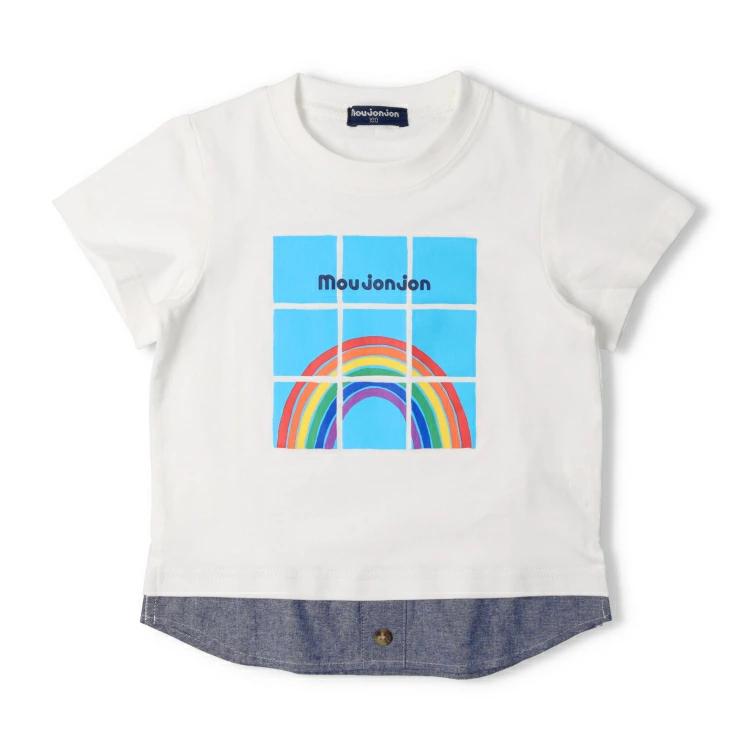 レインボープリントが入った半袖Tシャツ。裾にダンガリーを使った、重ね着風のデザイン。同じプリントを使ったロンパース(M34703)があるので、兄弟でお揃い、ペアコーデ、リンクコーデもおすすめ!おそろいアイテムはギフトやプレゼントにも人気です!【アイテム】トップス カジュアル お洒落 オシャレ かっこいい かわいい 可愛い 普段着 デイリーウェア お出かけ着 お外着 お外遊び着 子ども服 こども服 男児 男の子 ボーイズ キッズ ベビーサイズ トドラーサイズ 幼稚園 保育園 小学校 通園 通学 小学生 2025年春夏物新作 丸高衣料 ホワイト 白色 イエロー 黄色 ムージョンジョン コットン100% 綿100% 兄弟 お揃い オソロ おそろい お揃いリンク リンクコーデ ペアルック 虹