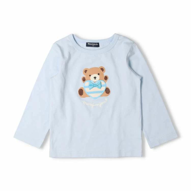 可愛らしいくまのプリントにボーダー生地のアップリケ使いが女の子らしい長袖Tシャツ、ロンT。さりげないリボンのモチーフもポイント! 【アイテム】トップス シンプル ガーリー フェミニン カジュアル お洒落 オシャレ かわいい 可愛い 普段着 デイリーウェア お出かけ着 お外着 お外遊び着 子ども こども 女児 女の子 ガールズ キッズ ベビーサイズ トドラーサイズ 幼稚園 保育園 小学校 通園 通学 小学生 2025年春夏物新作 丸高衣料 ロングスリーブ 長袖 ムージョンジョン 熊 クマ アニマル 動物 ピンク ライトブルー 水色 コットン100% 綿100%