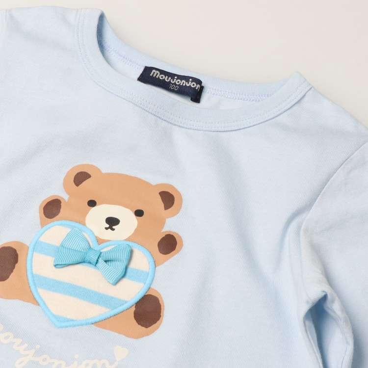 可愛らしいくまのプリントにボーダー生地のアップリケ使いが女の子らしい長袖Tシャツ、ロンT。さりげないリボンのモチーフもポイント! 【アイテム】トップス シンプル ガーリー フェミニン カジュアル お洒落 オシャレ かわいい 可愛い 普段着 デイリーウェア お出かけ着 お外着 お外遊び着 子ども こども 女児 女の子 ガールズ キッズ ベビーサイズ トドラーサイズ 幼稚園 保育園 小学校 通園 通学 小学生 2025年春夏物新作 丸高衣料 ロングスリーブ 長袖 ムージョンジョン 熊 クマ アニマル 動物 ピンク ライトブルー 水色 コットン100% 綿100%