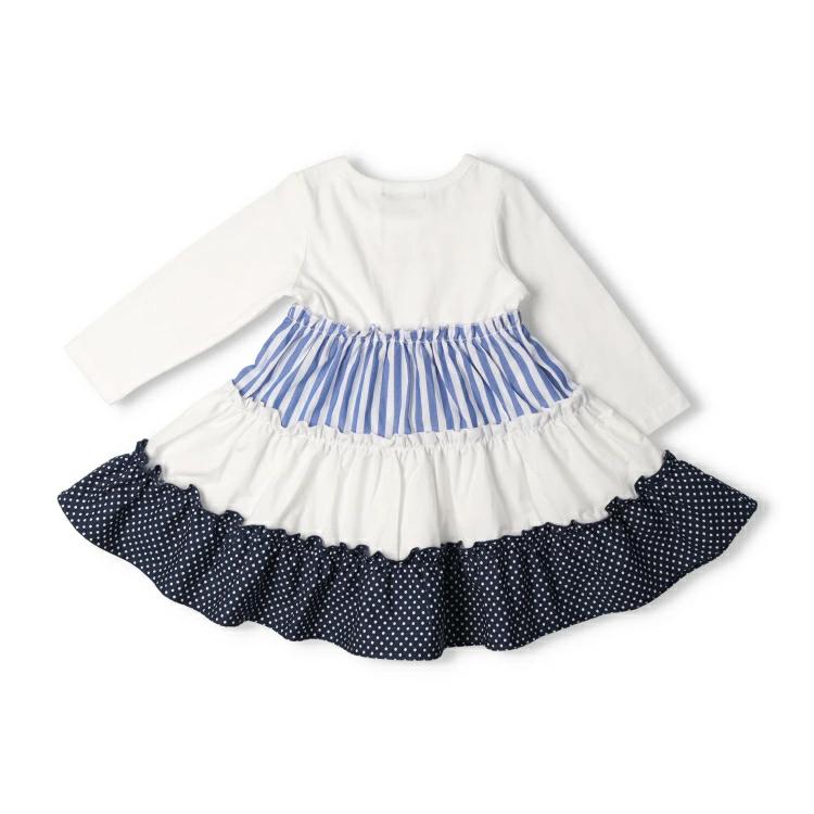 Tシャツ素材と布帛素材の異素材切替のワンピース。スカートがフレアーなシルエットのティアードデザイン。同じようなデザインでロンパース(M24702)があるので、姉妹でお揃い、ペアコーデ、リンクコーデもおすすめ!おそろいアイテムはギフトやプレゼントにも人気です!【アイテム】トップス シンプル ガーリー フェミニン カジュアル お洒落 オシャレ かわいい 可愛い 普段着 デイリーウェア お出かけ着 お外着 お外遊び着 子ども こども 女児 女の子 ガールズ キッズ ベビーサイズ トドラーサイズ 幼稚園 保育園 小学校 通園 通学 小学生 2025年春夏物新作 丸高衣料 ロングスリーブ 長袖 ホワイト 白色 ムージョンジョン 姉妹 お揃い オソロ おそろい お揃いリンク リンクコーデ ペアルック コットン100% 綿100%