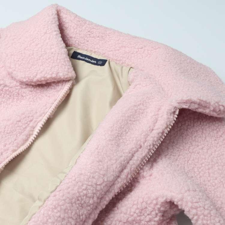 もこもこしたシープボアの襟付きジャケット・アウターです。軽くてあたたかく、表面はふんわり、中は裏地付きで防寒対策もバッチリ!丸い襟とぽわんとした袖がお子様の可愛さを惹きたてます♪暗くなりがちな秋冬のコーデが明るくなるオフホワイト、ピンクの2色展開です。シンプルなデザインでどんなコーデにも相性ばっちり!通園通学や普段使いからお出掛けまで様々なシーンで活躍するアイテムです。【アイテム】アウター 軽防寒 ライトアウター カジュアル お洒落 オシャレ かっこいい かわいい 可愛い 普段着 デイリーウェア お出かけ 子ども こども 男児 男の子 女児 女の子 ガールズ キッズ ベビーサイズ トドラーサイズ 幼稚園 保育園 小学校 通園 通学 小学生 2024年秋冬物新作 丸高衣料 白 ホワイト ピンク 桃色 ムージョンジョン