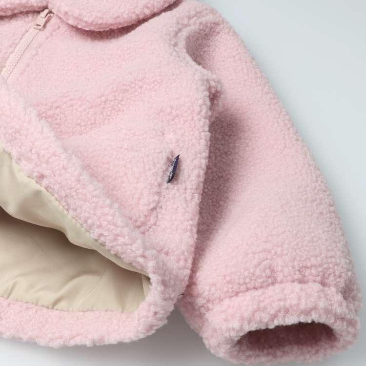 もこもこしたシープボアの襟付きジャケット・アウターです。軽くてあたたかく、表面はふんわり、中は裏地付きで防寒対策もバッチリ!丸い襟とぽわんとした袖がお子様の可愛さを惹きたてます♪暗くなりがちな秋冬のコーデが明るくなるオフホワイト、ピンクの2色展開です。シンプルなデザインでどんなコーデにも相性ばっちり!通園通学や普段使いからお出掛けまで様々なシーンで活躍するアイテムです。【アイテム】アウター 軽防寒 ライトアウター カジュアル お洒落 オシャレ かっこいい かわいい 可愛い 普段着 デイリーウェア お出かけ 子ども こども 男児 男の子 女児 女の子 ガールズ キッズ ベビーサイズ トドラーサイズ 幼稚園 保育園 小学校 通園 通学 小学生 2024年秋冬物新作 丸高衣料 白 ホワイト ピンク 桃色 ムージョンジョン