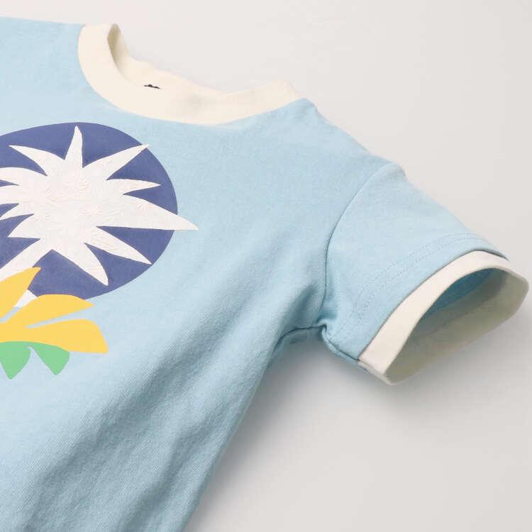 ヤシの木柄の半袖Tシャツ。白いヤシの木柄部分は濡れたら色が浮き出るウォーターチェンジ加工がされています。海・川・プールなどで楽しめます♪【アイテム】トップス カジュアル お洒落 オシャレ かっこいい かわいい 可愛い 普段着 デイリーウェア お出かけ着 お外着 お外遊び着 子ども服 こども服 男児 男の子 ボーイズ キッズ ベビーサイズ トドラーサイズ 幼稚園 保育園 小学校 通園 通学 小学生 2024年春夏物新作 丸高衣料 半袖 ピンク ライトブルー 水色 ムージョンジョン