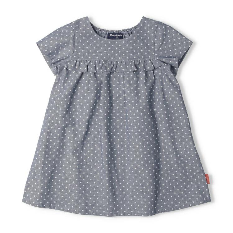 ダンガリーに上品なイメージの小さい水玉柄をプリントしたシンプルな半袖ワンピース。胸元のフリルもポイント!襟ぐり後ろがゴムの仕様になっているので、着脱も楽ちん!同じダンガリーのドット柄のハーフパンツ(M35107)、ショートパンツ(M45101)もあるので、兄弟姉妹やお友達と男女でアイテム違いでペア、リンクコーデ、お揃い、おそろいコーディネートも楽しめます!【アイテム】トップス シンプル ガーリー フェミニン カジュアル お洒落 オシャレ かわいい 可愛い 普段着 デイリーウェア お出かけ着 お外着 お外遊び着 子ども こども 女児 女の子 ガールズ キッズ ベビーサイズ トドラーサイズ 幼稚園 保育園 小学校 通園 通学 小学生 2025年春夏物新作 丸高衣料 兄妹 姉弟 兄弟 姉妹 お揃い オソロ おそろい お揃いリンク リンクコーデ ペアルック コットン100% 綿100%