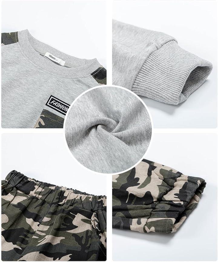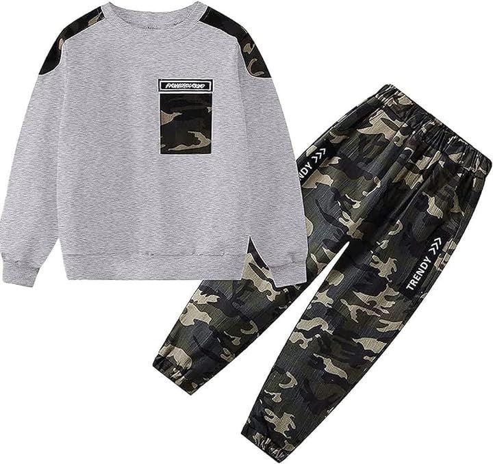 「デザイン」ラウンドネックの長袖tシャツ、迷彩柄、伸縮性あるゴムウエスト、両サイトにポケットが付き、小物の収納は可能です。
