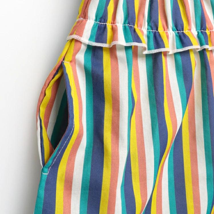 カラフルで目をひくストライプ柄のワンピース。フレアーな袖に胸のギャザーのデザインが女の子らしい!薄手の布帛素材のブロード素材で夏でもさらっと着られます!同じ柄でハーフパンツ(K35130)もあるので、兄弟姉妹やお友達と男女でアイテム違いでペア、リンクコーデ、お揃い、おそろいコーディネートも楽しめます!【アイテム】トップス シンプル ガーリー フェミニン カジュアル お洒落 オシャレ かわいい 可愛い 普段着 デイリーウェア お出かけ着 お外着 お外遊び着 子ども こども 女児 女の子 ガールズ キッズ ベビーサイズ トドラーサイズ 幼稚園 保育園 小学校 通園 通学 小学生 2025年春夏物新作 丸高衣料 イエロー 黄色 グリーン 緑色 コットン100% 綿100% 兄妹 姉弟 兄弟 姉妹 お揃い オソロ おそろい お揃いリンク リンクコーデ ペアルック