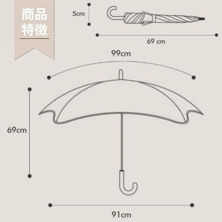 「商品内容」開いた時の傘の直径(弧の長さ): 99cm 傘の全長(持ち手を含む): 69cm 傘を閉じた時の長さ: 69cm