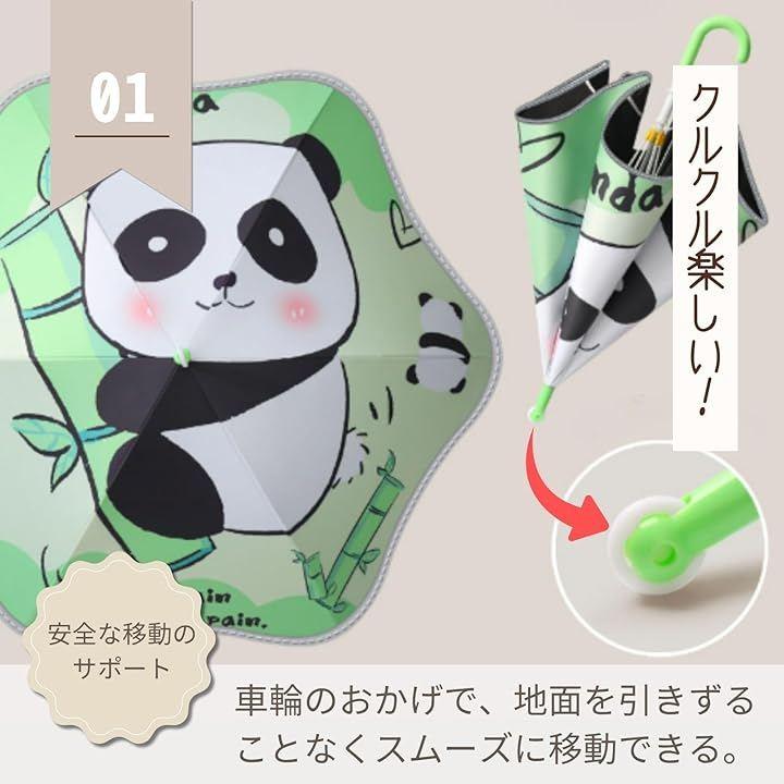 「安全な移動のサポート」車輪のおかげで、地面を引きずることなくスムーズに移動でき、傘の破損を防ぐと同時に、子どもが安全に歩行するのを助けます。