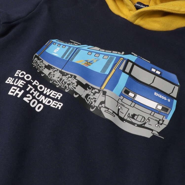 男の子が大好きな電車アイテム!人気のJR貨物電車、貨物列車デザイン!貨物列車のブルーサンダーのプリント入り。フードはJR貨物で働く人たちのヘルメット風デザイン。裏毛素材で秋から春まで長く着られるパーカー、フーディー。【アイテム】長袖 ロングスリーブ トップス カジュアル お洒落 オシャレ かっこいい かわいい 可愛い 普段着 デイリーウェア お出かけ着 お外遊び着 子ども こども 男児 男の子 ボーイズ キッズ ベビーサイズ トドラーサイズ 幼稚園 保育園 小学校 通園 通学 小学生 2023年秋冬物新作 丸高衣料 鉄道 子鉄 車両 電車 電鉄 トレイン ライトグリーン 緑色 コン ネイビー 紺色 ムージョンジョン フード付きトレーナー コットン100% 綿100%