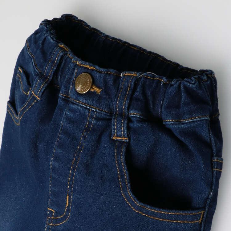 シンプルでベーシックでどんなアイテムにも合わせやすいデニムパンツ。細身のシルエットのスキニーデザイン。ストレッチもきいているので、履きやすい!男の子も女の子もユニセックスで着られるアイテム。【アイテム】シンプル ベーシック 無地 カジュアル お洒落 オシャレ かっこいい かわいい 可愛い 普段着 お外着 お外遊び着 デイリーウェア お出かけ着 ロング丈 長丈 長ズボン フル丈 ボトムス 子ども こども 男児 男の子 ボーイズ キッズ ベビーサイズ トドラーサイズ 幼稚園 保育園 小学校 通園 通学 小学生 2023年秋冬物新作 丸高衣料 長パンツ ネイビー コン 紺色 ジーンズ Gパン ジーパン ムージョンジョン