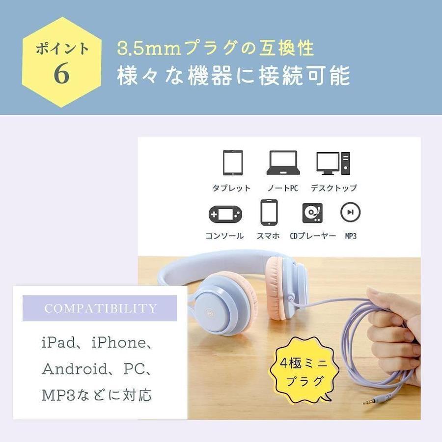 お子さまのオンライン学習や動画視聴にぴったりな、子供用有線ヘッドホンです。