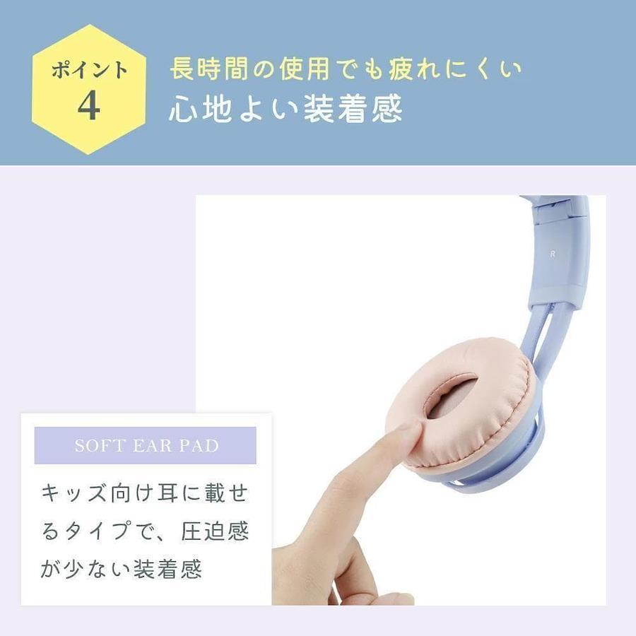 やわらかいイヤーパッドとソフトレザーヘッドバンドで長時間の使用でも疲れにくく、調整可能なヘッドバンドで小学生から高学年まで快適にお使いいただけます。