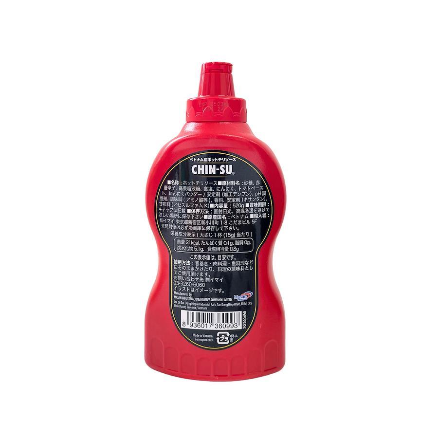 原材料名:砂糖、赤唐辛子、果糖シロップ、食塩、にんにく、トマトペースト、にんにくパウダー/安定剤(加工デンプン)、酸味料、調味料(アミノ酸等)、香料、安定剤(キサンタン)、甘味料(アセスルファムK)、着色料(カルミン酸)