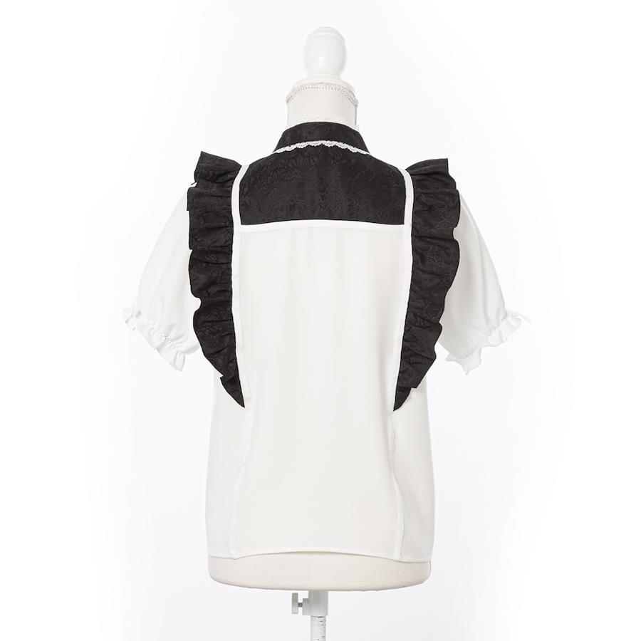 チャイナなテイストがかわいい!胸明きのチャイナブラウス♪【デザイン】チャイナ柄のジャガードが配色で組み込まれたブラウスです。胸元のリボンはブローチピンで取り外し可能です。衿にスナップ釦があるので着脱が簡単になっています。リボンについているタッセルがアクセントの一枚です♪肩から胸元にデザインが集中しているので自撮り映えすること間違いなし!今年の夏はチャイナがおすすめ♪【素材】本体部分はしっかりした素材を使用しています。配色部分にはサテンのジャガード生地を使用しています。首元のスナップ釦で着脱可能です。【コーディネート】同じ生地と色味のスカートがございますので合せることでセットアップのようなコーディネートに仕上がります。胸元が空いていますので同色のインナーの着用をオススメします。《透け感》なし 《生地の厚さ》普通 《裏地》なし 《伸縮性》なし《生産国》中国