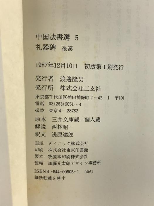 Chinese Law Selection 5 (Later Han) Ceremonial Instrument Monument Nigensha 1987