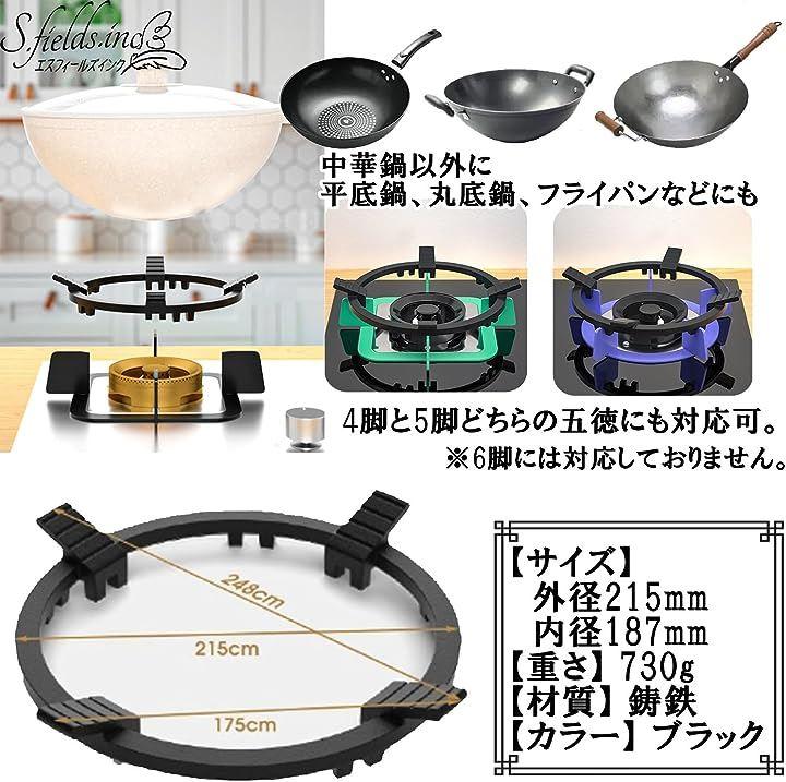 この中華鍋リングは頑丈な鋳鉄製で、重量も730gあり、しっかりと五徳にセットできます。