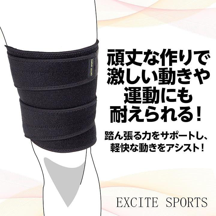 商品は、太もも全体を圧迫固定することで、筋肉の無駄な動きを抑制し、足への負担を軽減し、スムーズな動作のサポートをします。