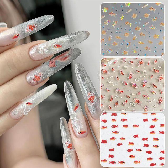 Chisafly Goldfish Nail Stickers, Ocean, Sea Creatures, Fish, Summer, Shellfish, Aurora, Summer Festival, DIY 3D, Set of 3