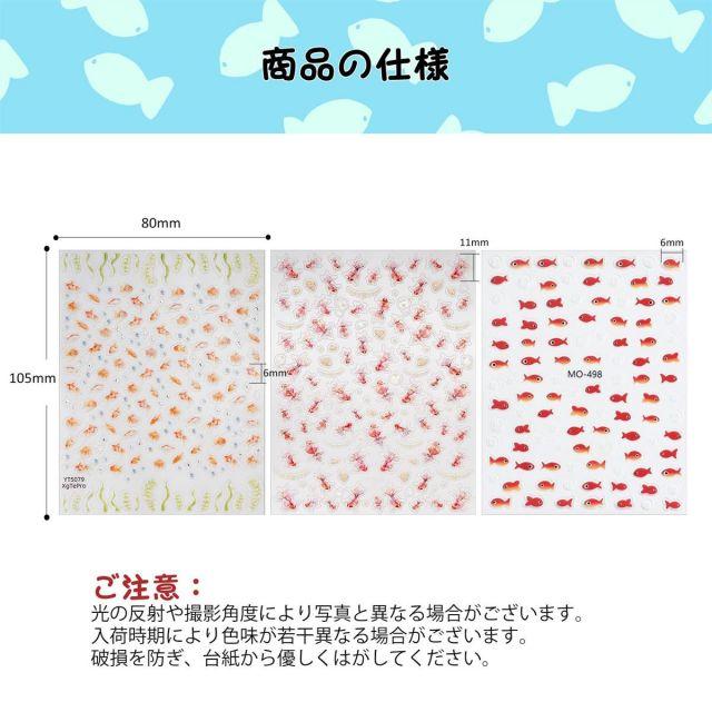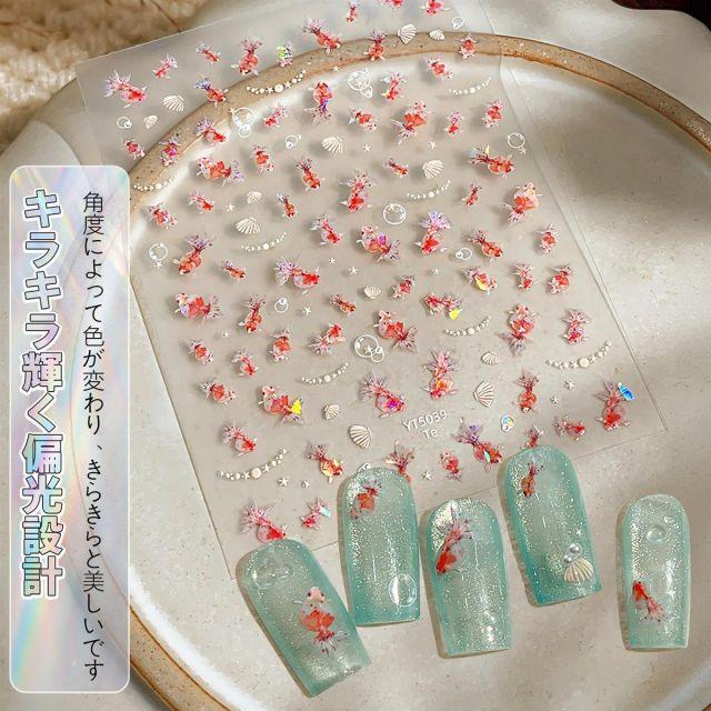スタイル:金魚3点セット◆商品名:Chisaflyネイルシール金魚ネイルステッカー海きんぎょう海の生き物魚夏サマー貝オーロラ夏祭りDIY3d立体3枚セット