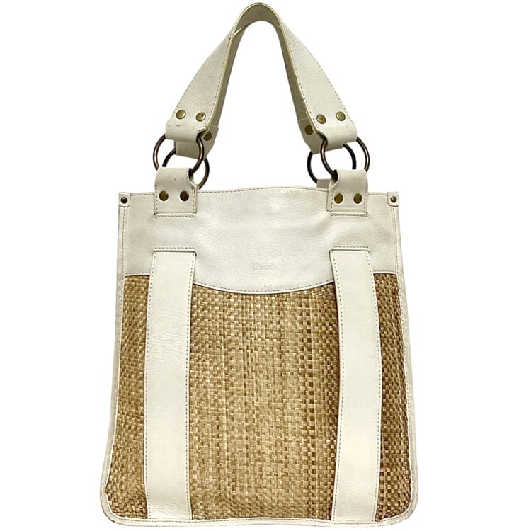 ☆---- 商品について ----☆クロエ トートバッグ ベージュ ホワイト 白 かごバッグ レザー ラフィア 中古 Chloe