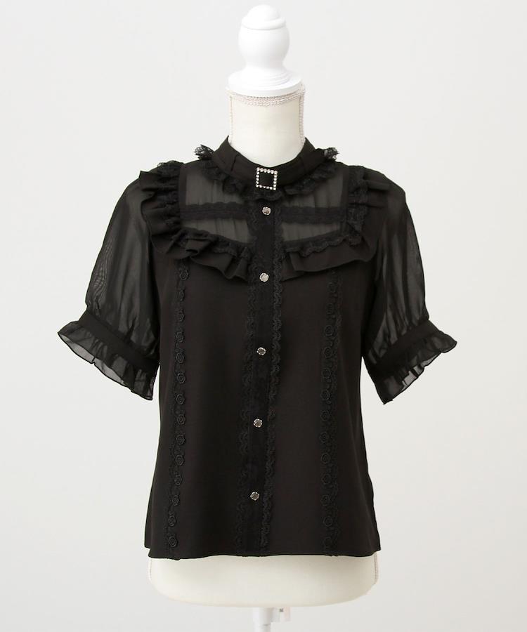 クロスレースが胸元に浮かぶ、儚くて可愛い、病みかわゴシックブラウス