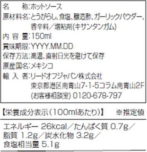 原材料:とうがらし、食塩、香辛料、りんご酢、ガーリックパウダー/酢酸、キサンタンガム、香料、水