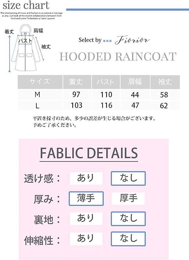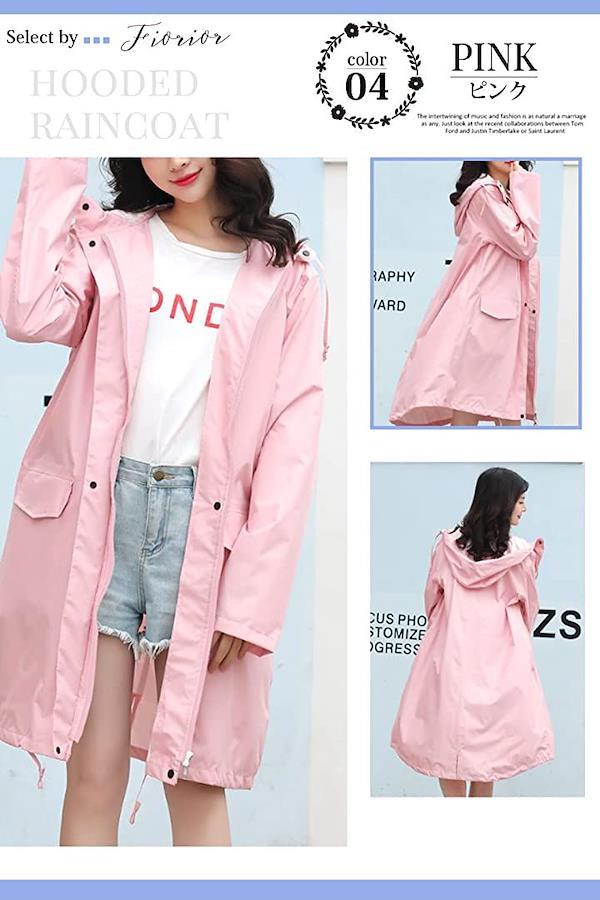 普段のコーディネートに馴染むシンプルでかわいいフード付きレインコートです。