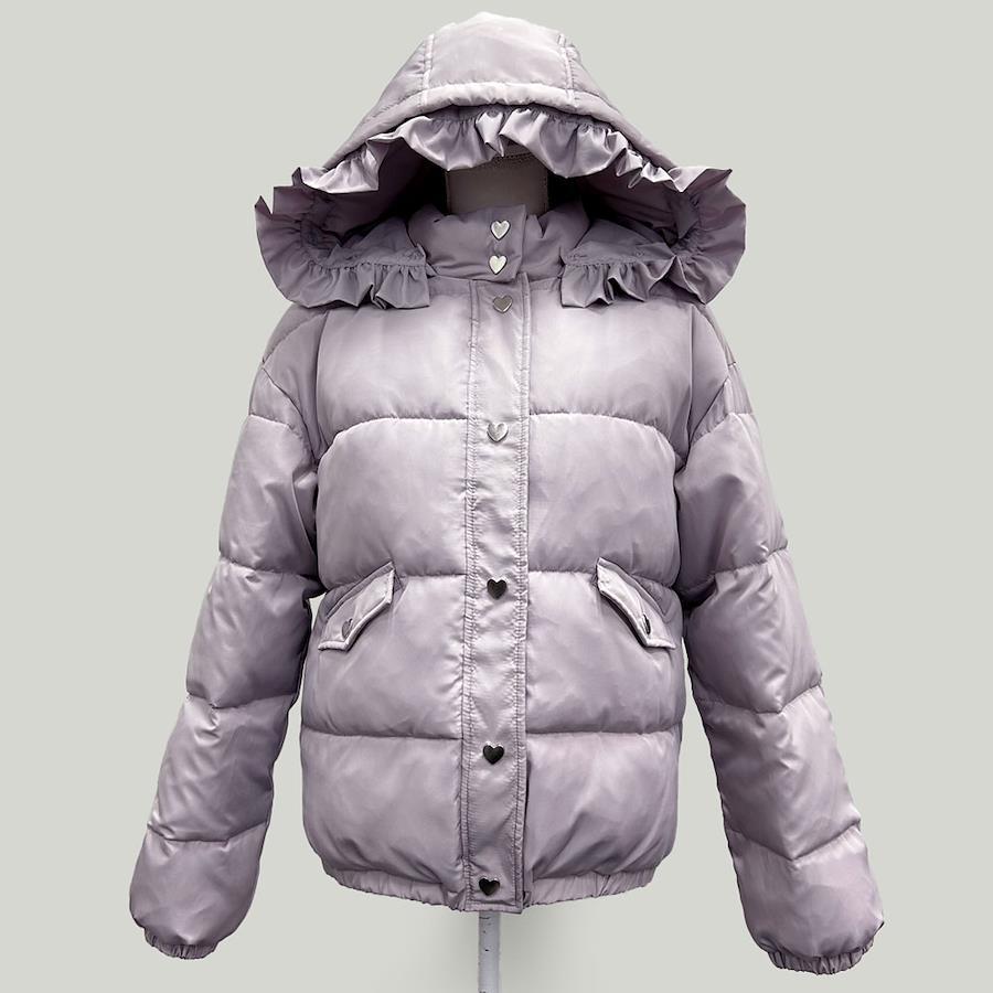 カラバリたっぷり、選べるフードデザインのかわいすぎるダウンコートが登場♪【デザイン】DearMyLoveからダウンコートが登場♪ツノ付きとフリルフードの選べるデザインになっています♪フードを被ると映えること間違いなしのでデザインです。フードフリルはボタンで取り外し可能なのでお好みのスタイルで着用してください。さりげないハートスタッズもかわいく、普段使いにぴったりのアイテム。これからの寒い時期にかわいいダウンコートいかがでしょうか?【素材】中綿入りのダウンコートです。しっかりと暖かいです。ポケット付き。スナップボタンとジップファスナーで開閉可能です。【コーディネート】量産コーデから地雷コーデまで幅広いコーデに活躍してくれるアイテムです。これから寒くなる季節に1枚あると便利なかわいいダウンコートです♪ミニスカートコーデから、ワンピースコーデまで幅広く合わせやすいです。《透け感》なし 《生地の厚さ》厚手 《裏地》あり 《伸縮性》なし《生産国》中国