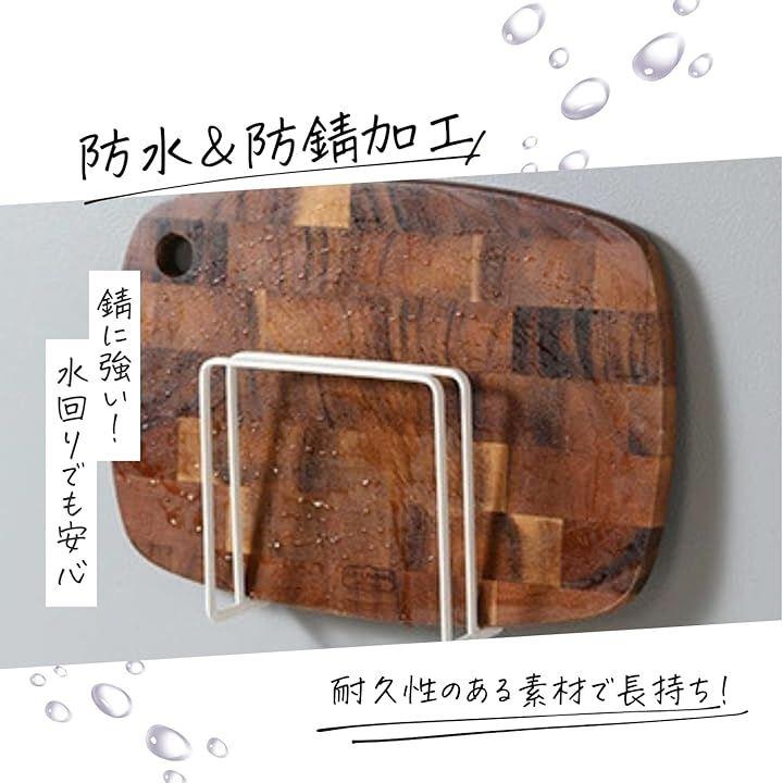 サイズ:約14x13.5x5.5cm 材質:スチール(粉体塗装)、強力マグネット カラー:ブラック、ホワイト 特徴:強力マグネット スリム収納 頑丈で耐久性あり 用途:厚み約2.5cmと約1.5cmのまな板を各1枚ずつ収納可能