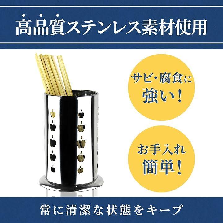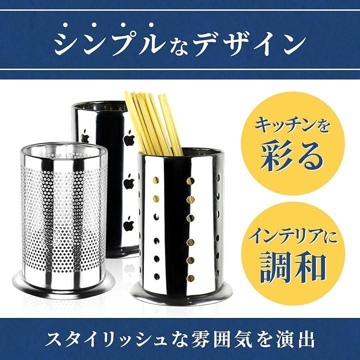 商品名: Crystal craft ステンレス製箸立て デザイン: 全周と底面に通気性を高める穴が空いており、カトラリーを乾燥した状態で保ちます。