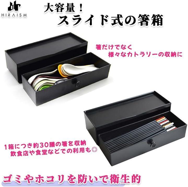 「大容量。スライド式の箸箱」1箱につき約30膳のお箸を収納できる大容量の箸ケースになります。