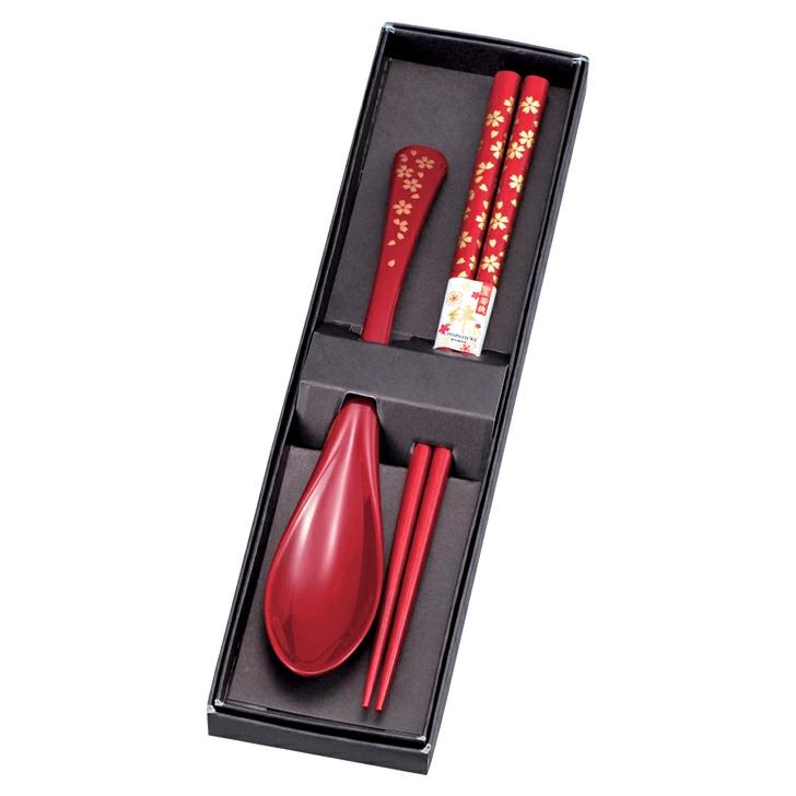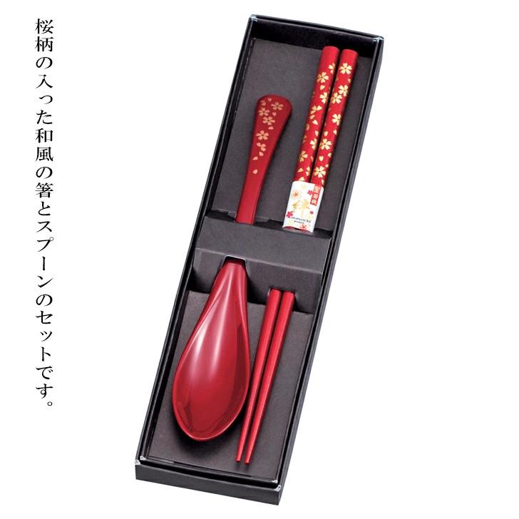 Chopsticks/Spoon Sakura SE3-455-1 Vermilion Family celebration Wedding gift Year-end gift Return gift Respect for the Aged Day Shichi-Go-San Parents Home Present Birthday Father's Day Mother's Day Petit gift Japanese-style chopsticks and spoon set with cherry blossom pattern.