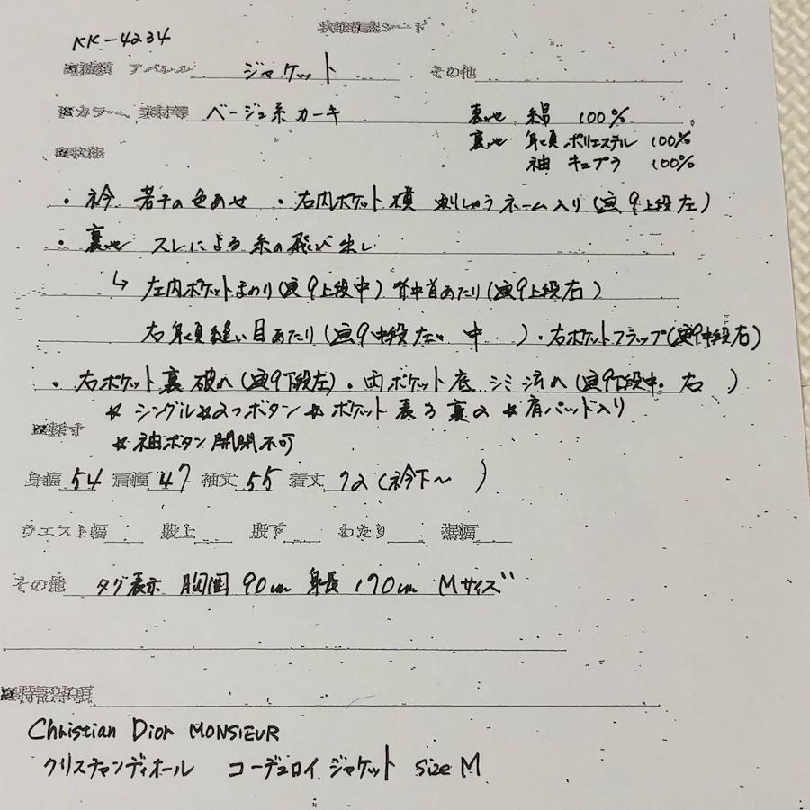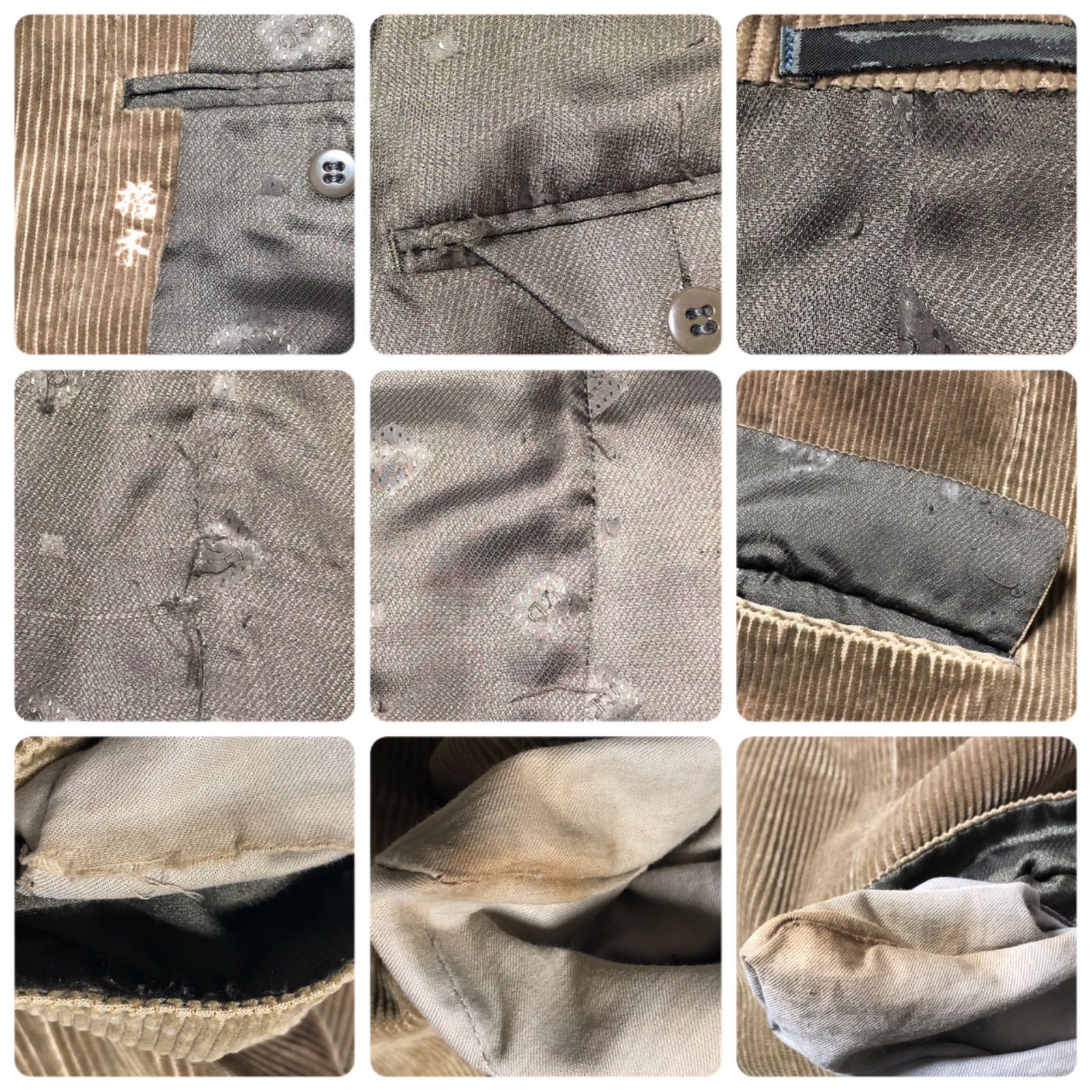 ■状態 ランクB畳シワ襟色褪せ小、内側ネーム、裏地にスレ、糸飛び出し、右ポケット裏破れ、両ポケット内汚れ※写真9参照
