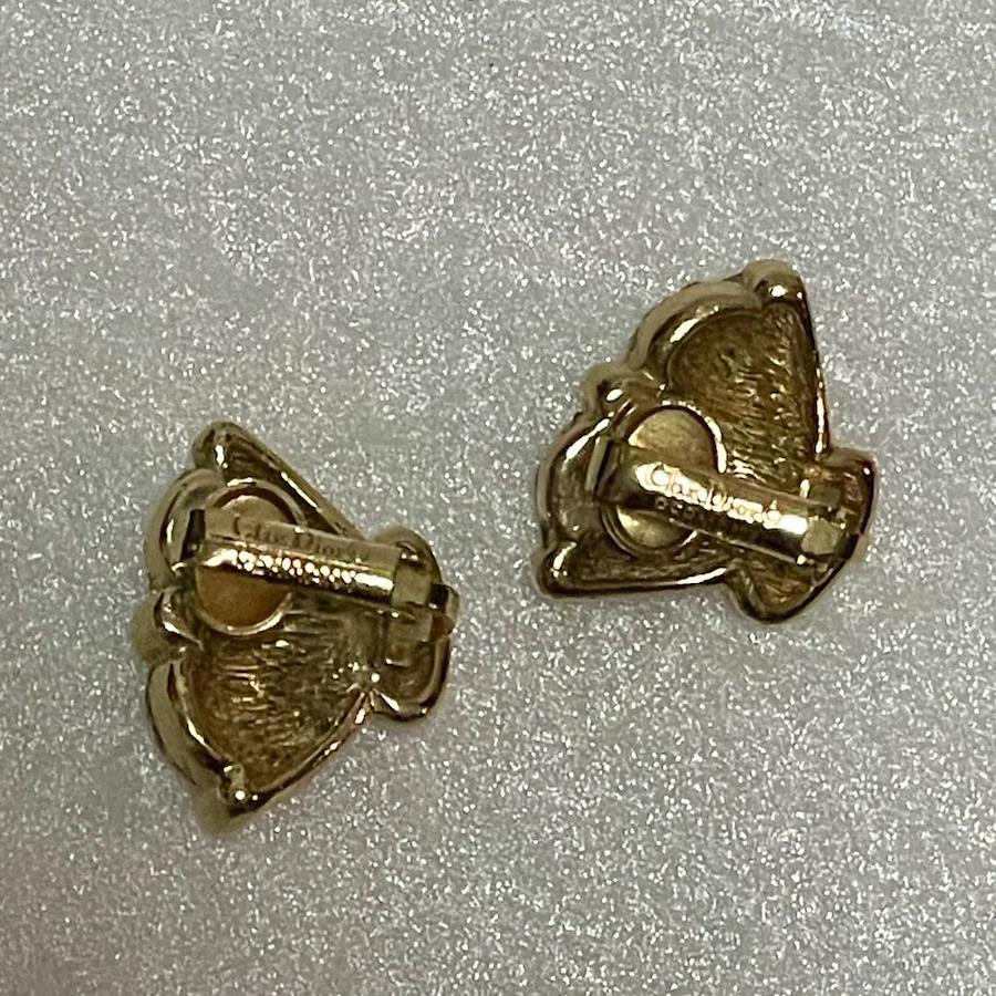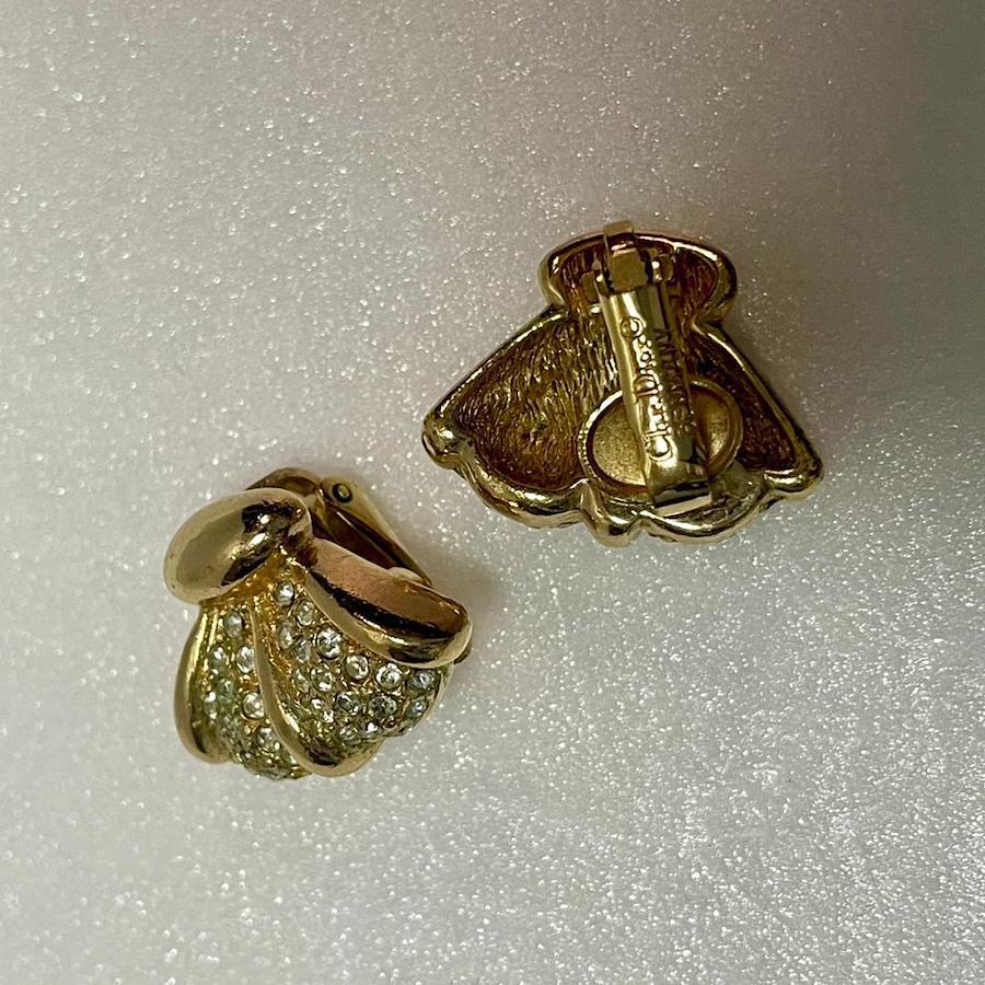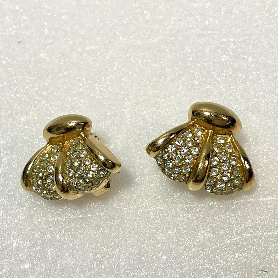 ☆こちらの商品はUSED品ですので新品や未使用品をお求めの方はご遠慮ください。ゴールドトーンの花びらデザインにクリスタル装飾のイヤリング。