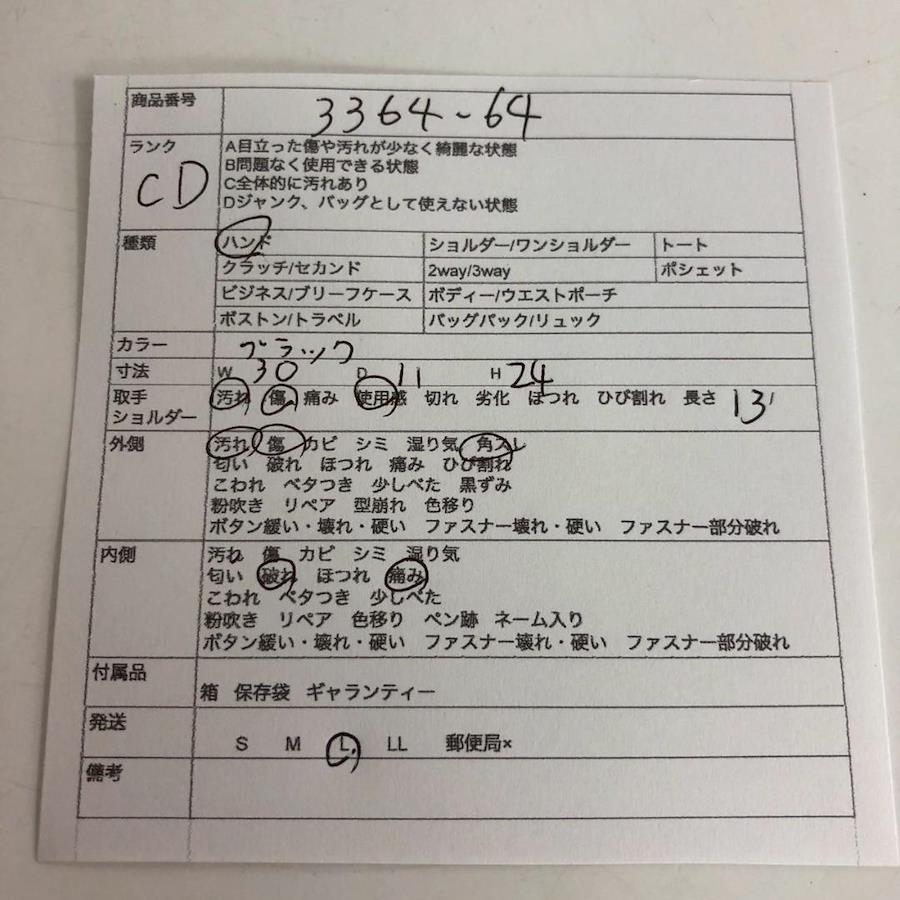 全体的に使用感あります。【外側】汚れ、傷、角スレが御座います。【内側】破れ、痛みが御座います。【取っ手、ショルダーストラップ】汚れ、傷、使用感が御座います。長さ13cm