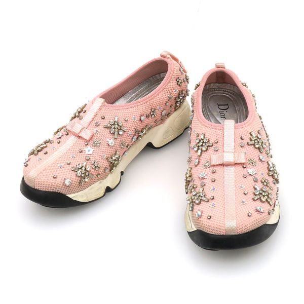 ■採寸#37 1/2 (日本サイズ約24.5cm)甲幅約8.5cm ソールの高さ約3.5cm■コメントC.Diorよりピンクのスニーカーが入荷いたしました。左右の中敷きにダメージ、ソール部分に汚れ、つま先スレがあり、パーツの欠損や一部取れてしまっている箇所が複数あります。スパンコールやビーズのスペアがあるので、ご自身でリペアが可能です。外履き感がありますが、通常使用は可能かと思われます。お気軽にお問合せくださいませ。