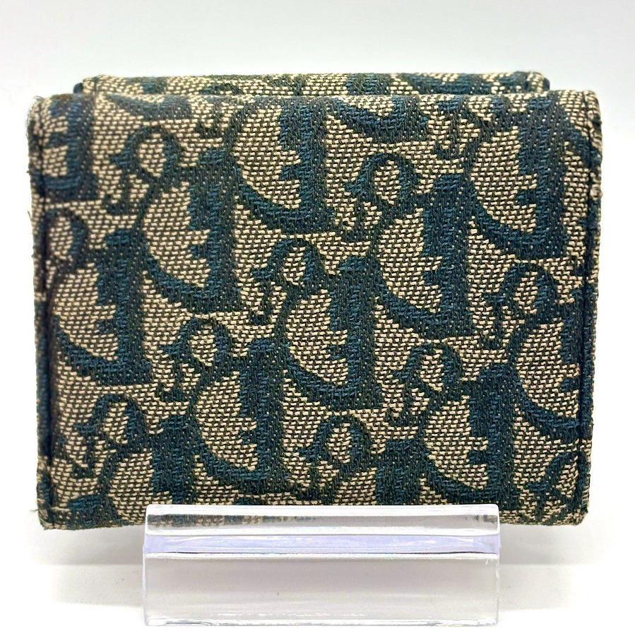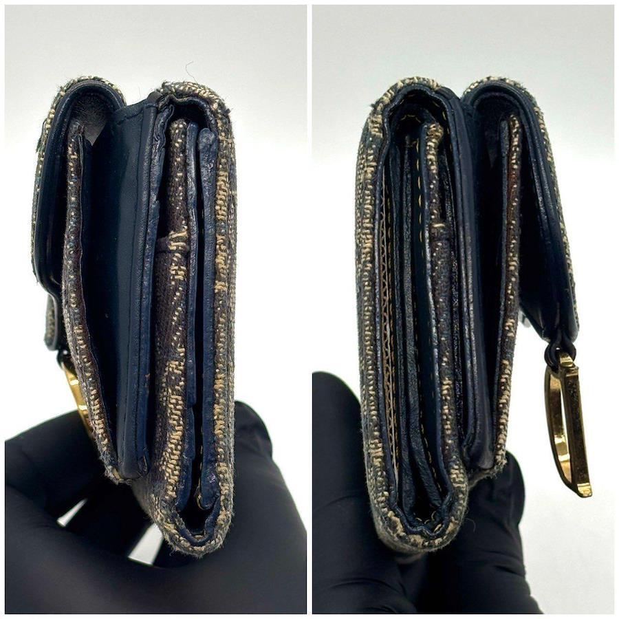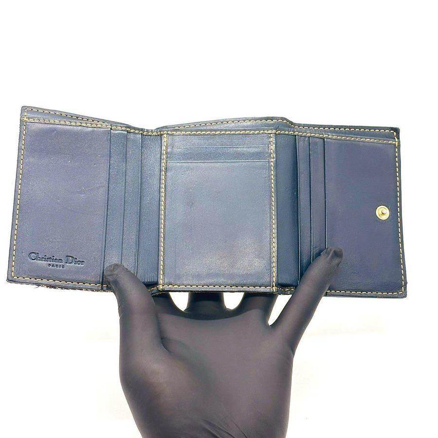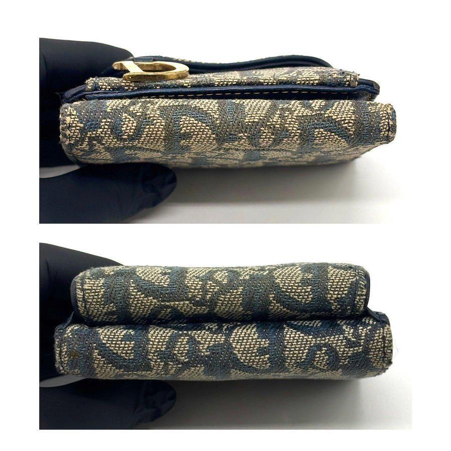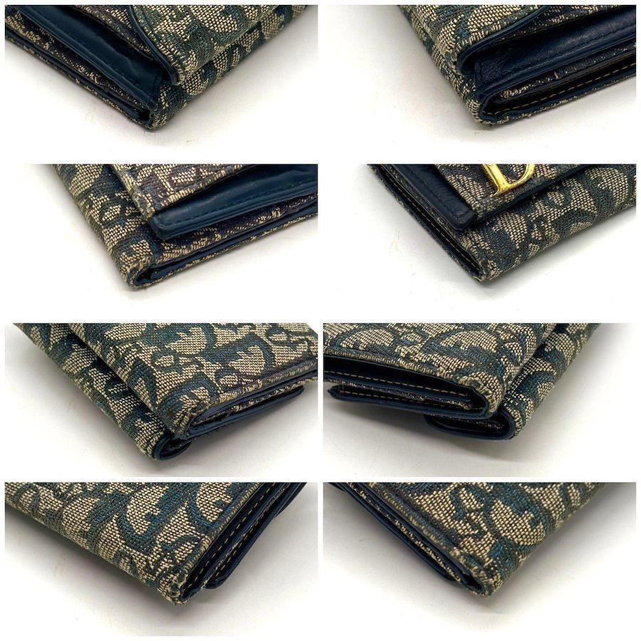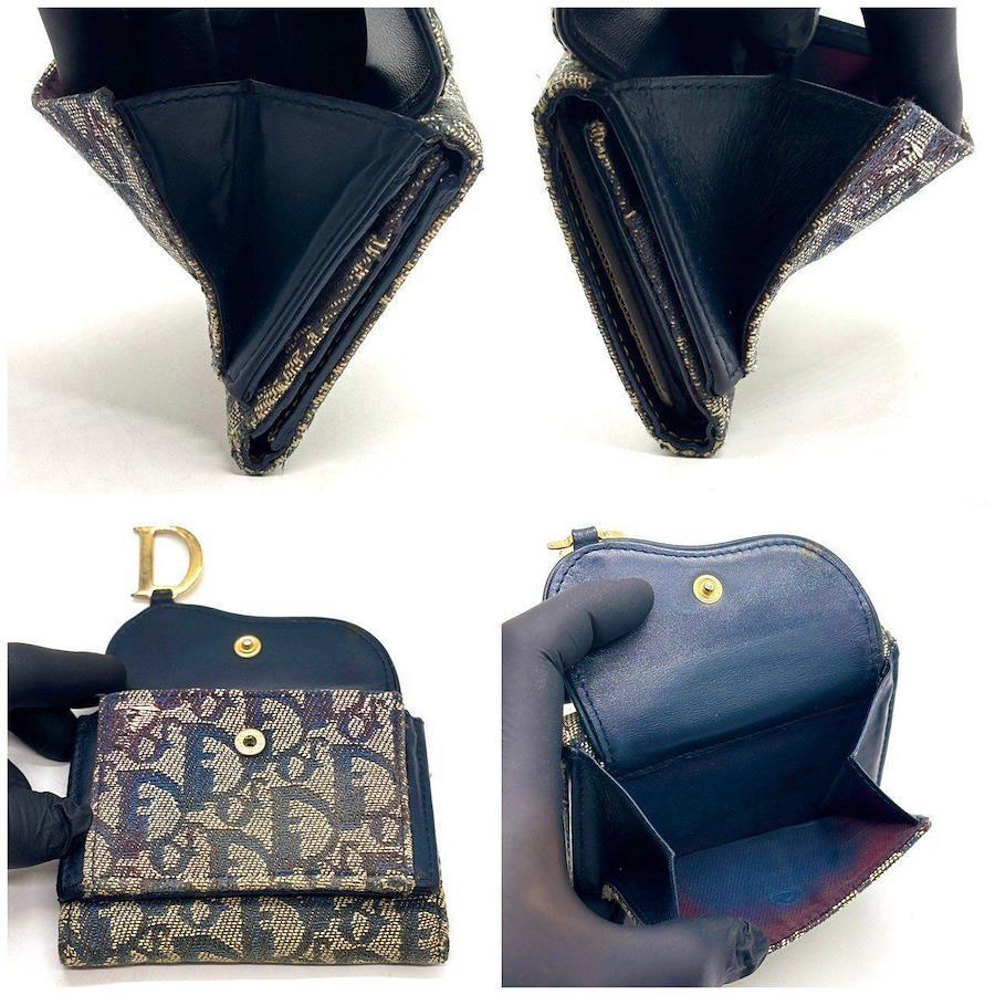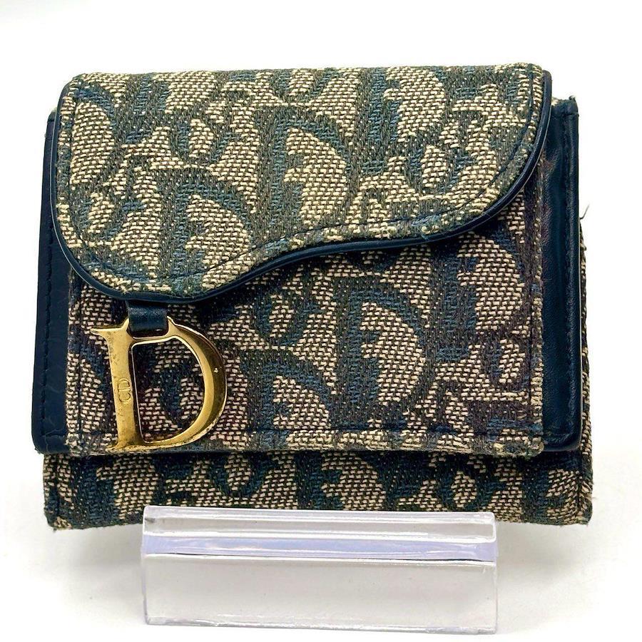 Christian Dior Tri-fold Wallet with Trotter Pattern, Saddle Line, D Logo, Canvas, Leather, Navy